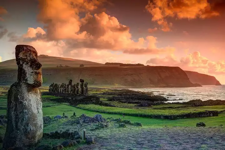 Prepárate para una experiencia inolvidable en el lugar más hermoso de Isla de Pascua. Comienza el día viendo el amanecer en Ahu Tongariki, donde el sol se eleva detrás de 15 majestuosos moáis. Tendrás la oportunidad de capturar fotos y videos mientras exploras este sitio histórico tras la salida del sol.